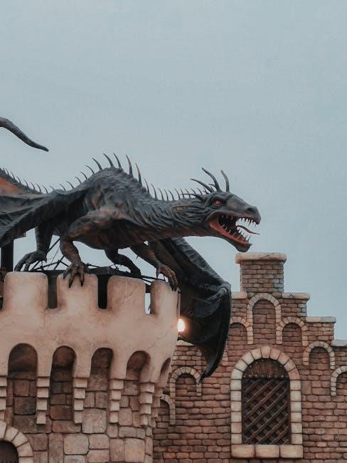 Tactically, the armies favor overwhelming force and coordinated assaults, leveraging draconian breath weapons and disciplined formations. The PDF provides Dungeon Masters with detailed stat blocks and tactical notes for each unit type, enabling realistic and challenging encounters. Understanding these tactics is crucial for players hoping to withstand the invasion, as the PDF illustrates.